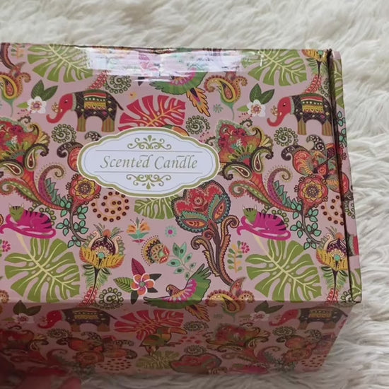 Elevate your ambiance with this beautifully designed scented candle gift set. Each candle is encased in a vibrant, artistic tin container that adds a touch of elegance to any space. The soothing fragrances create a calming atmosphere—perfect for meditation, relaxation, or romantic evenings. An ideal choice for gifting or home décor, these candles blend style and serenity in one stunning package.